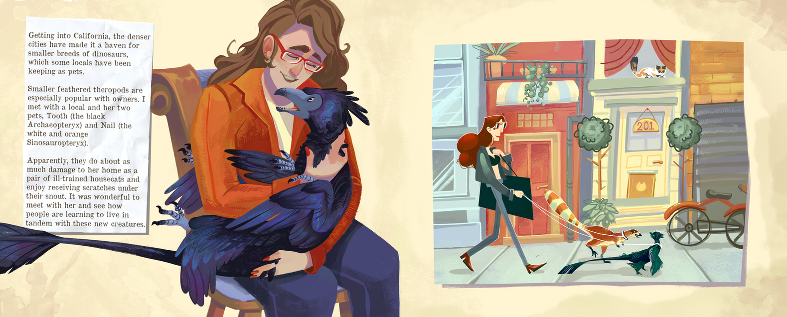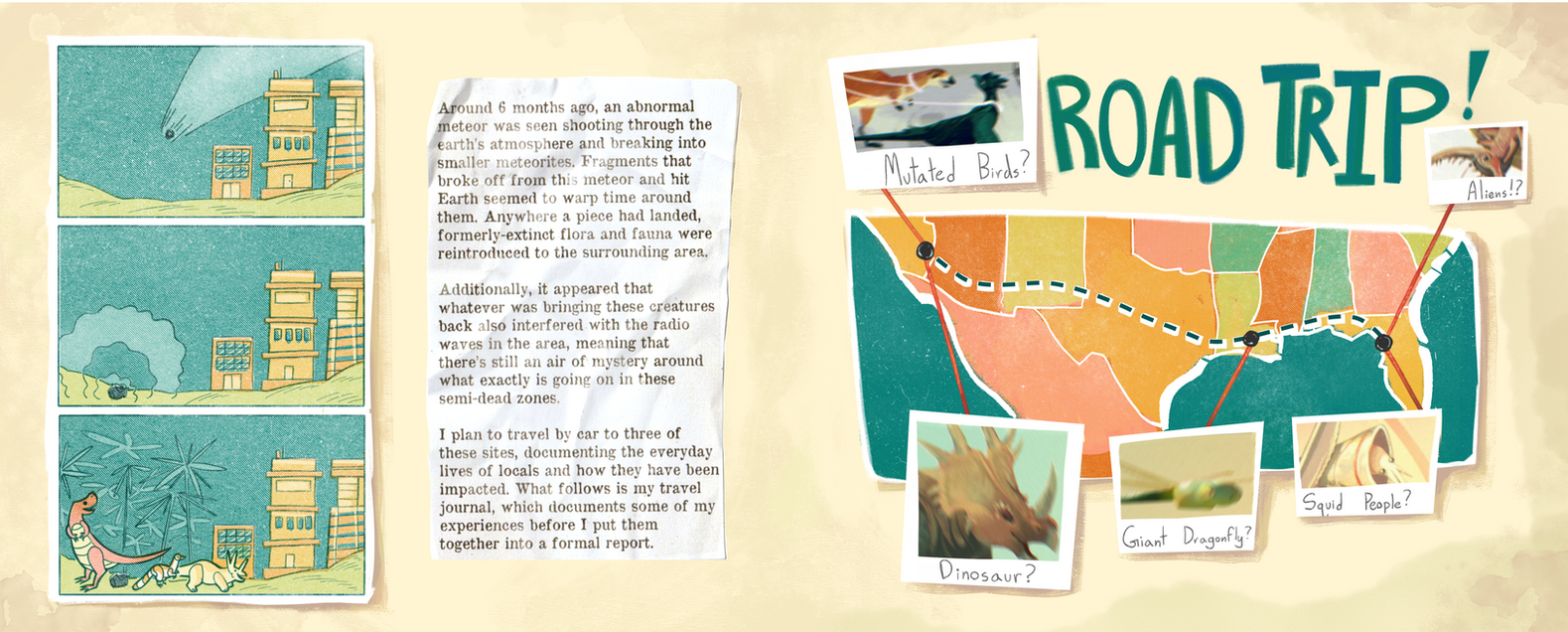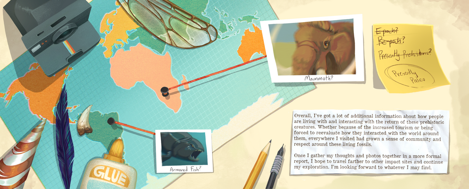 Presently Paleo explores an alternate universe where prehistoric creatures start reappearing all across the globe, and was created for my senior thesis at Ringling College of Art and Design.